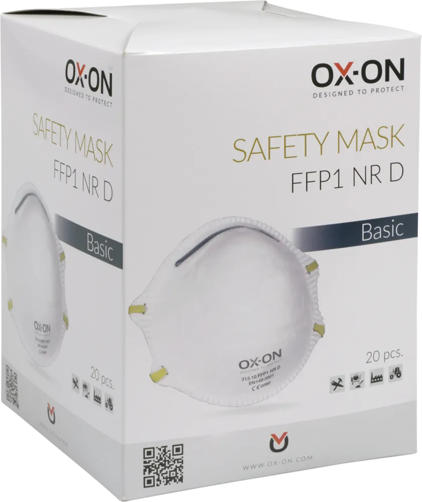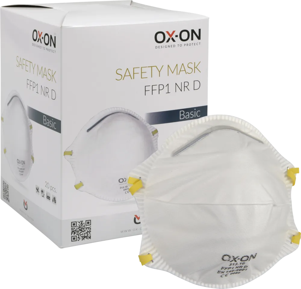Die OX-ON Mask FFP1NR D Basic ist eine sicherheitsgeprüfte Atemschutzmaske, für Arbeiten mit weniger gesundheitsgefährdenden, trockenen Partikeln und Aerosolen mit einem Grenzwert von <5 mg/m3. Der formbare Nasenbügel sorgt für optimale Anpassung der Maske im Nasenbereich. 20 Masken pro Box.