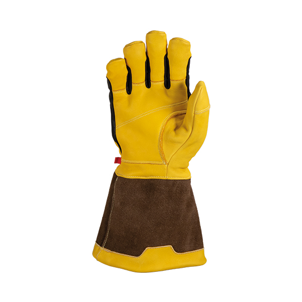 - Stulpe: Weite Stulpe aus hitzebeständigem und imprägniertem Spezialleder. Innenangebrachte Schlaufe zur Befestigung der Handschuhe an der Einsatzjacke.